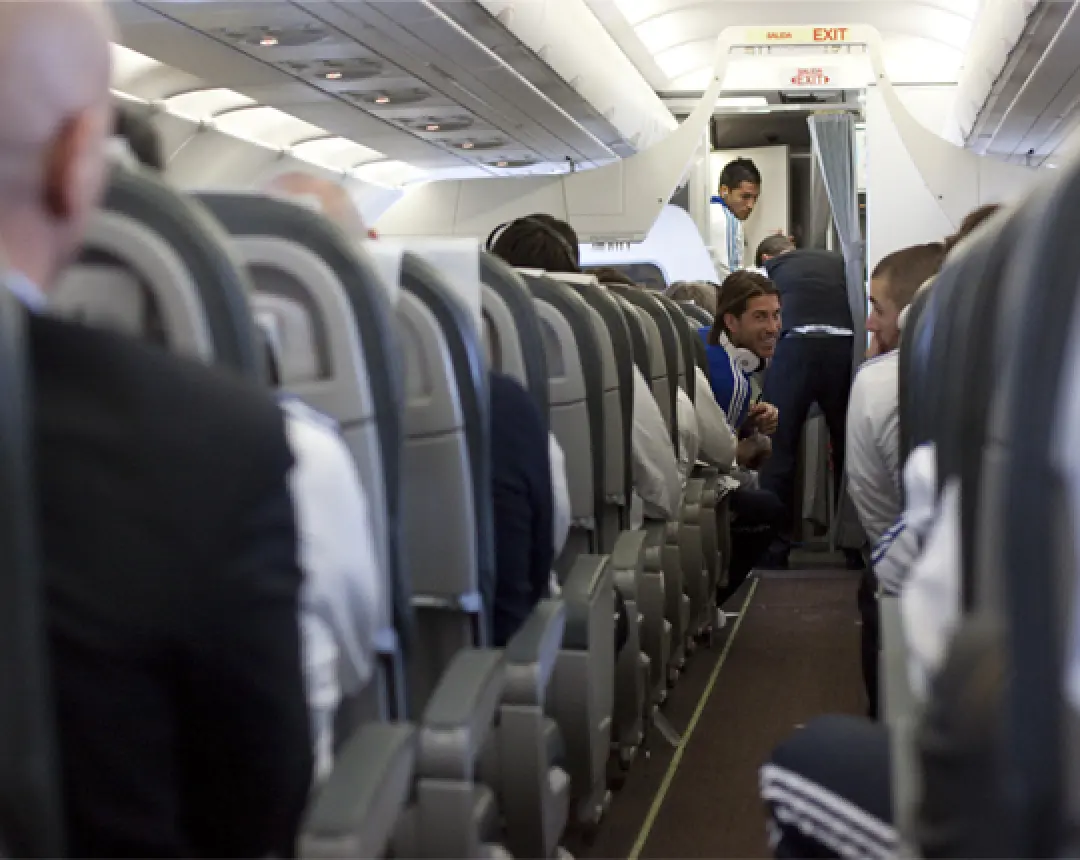 – Vuelo con el avión oficial del Real Madrid junto con la delegación (jugadores, entrenadores, directivos)